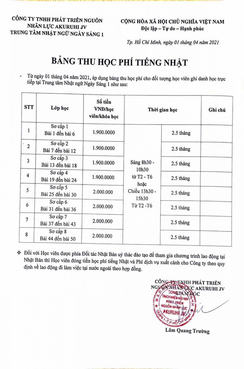 TRUNG TÂM NHẬT NGỮ NGÀY SÁNG 1