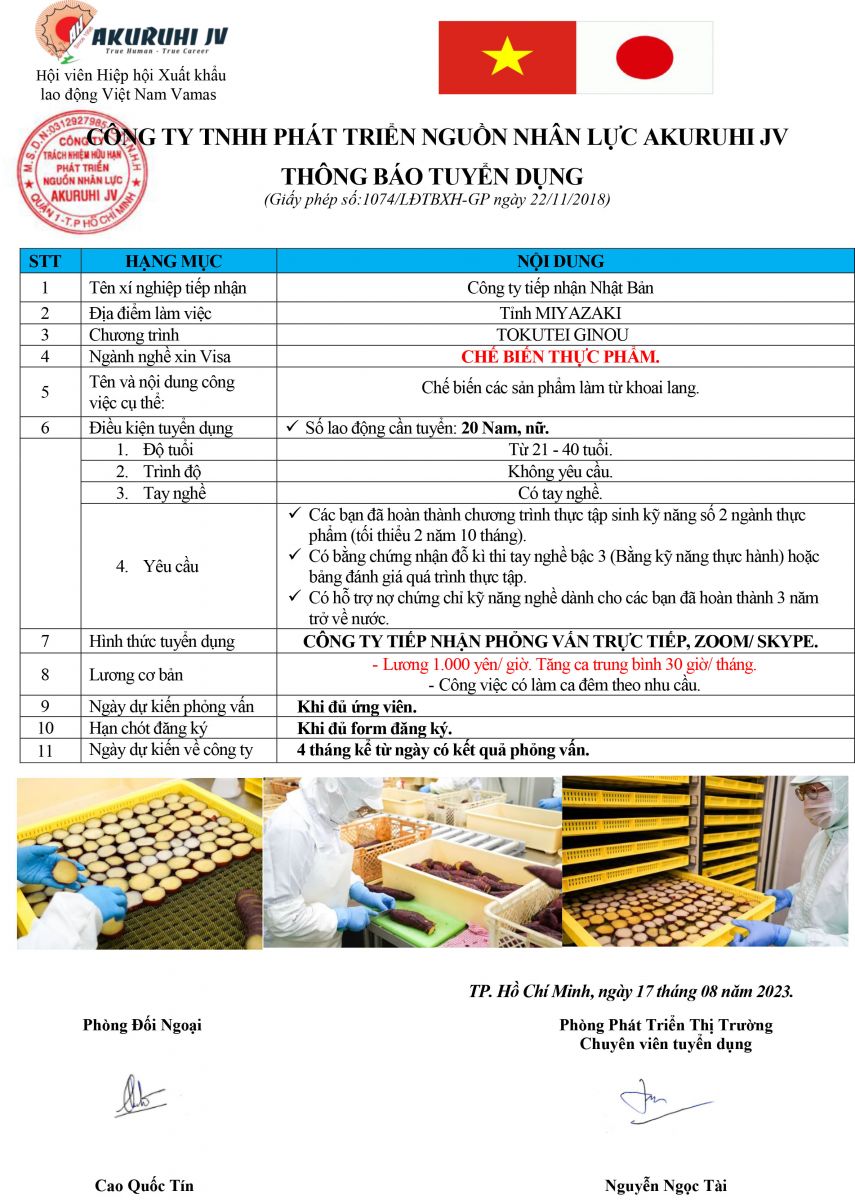 NGÀNH NGHỀ: TOKUTEI GINOU CBTP