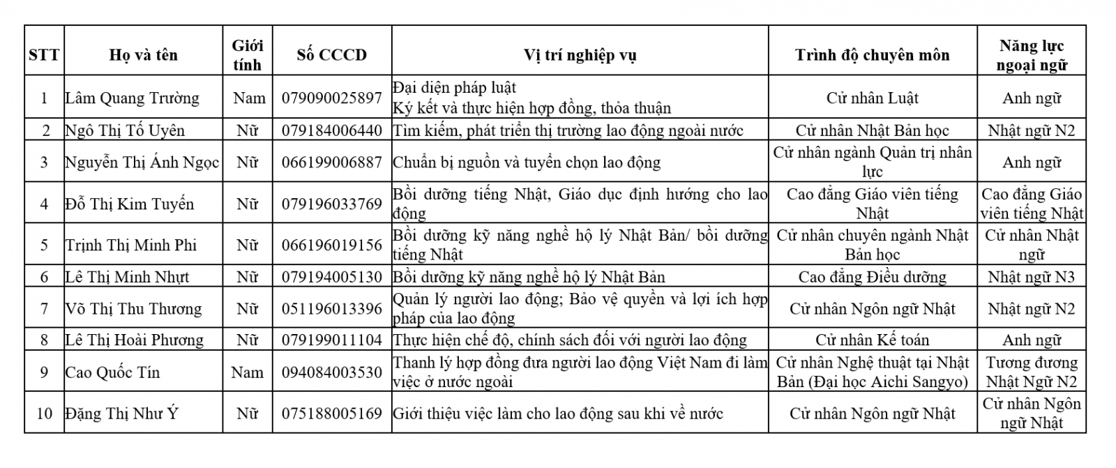 Đào tạo và huấn luyện (Nghề, Nhật ngữ, Kỹ năng, Tác phong);