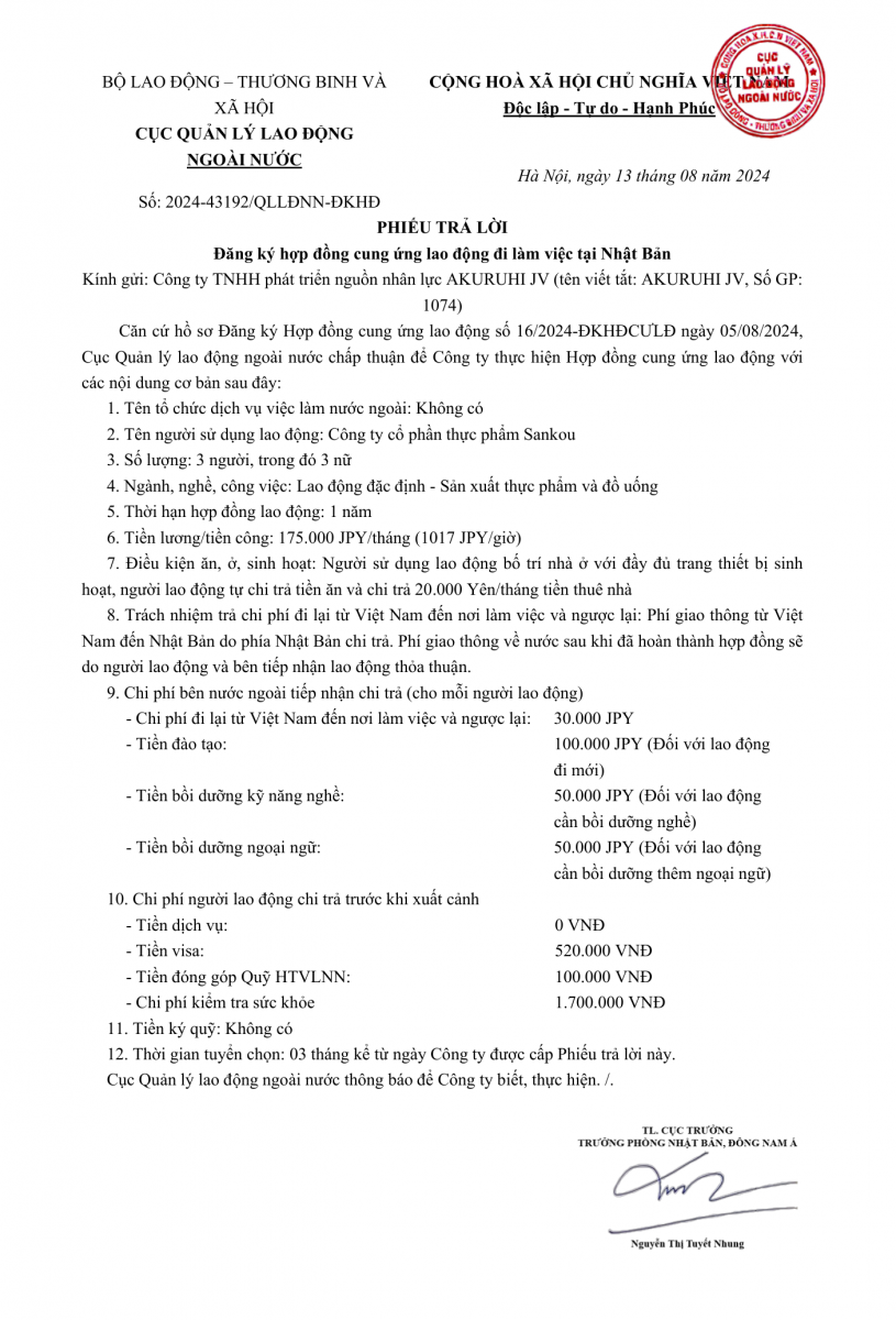 - Có thời gian lao động tại Nhật hơn 2 năm 10 tháng