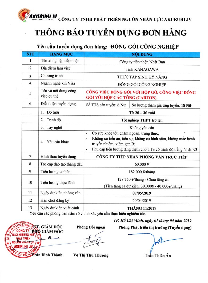 PHỎNG VẤN THỰC TẬP SINH ĐÓNG GÓI CÔNG NGHIỆP - THÁNG 5/2019